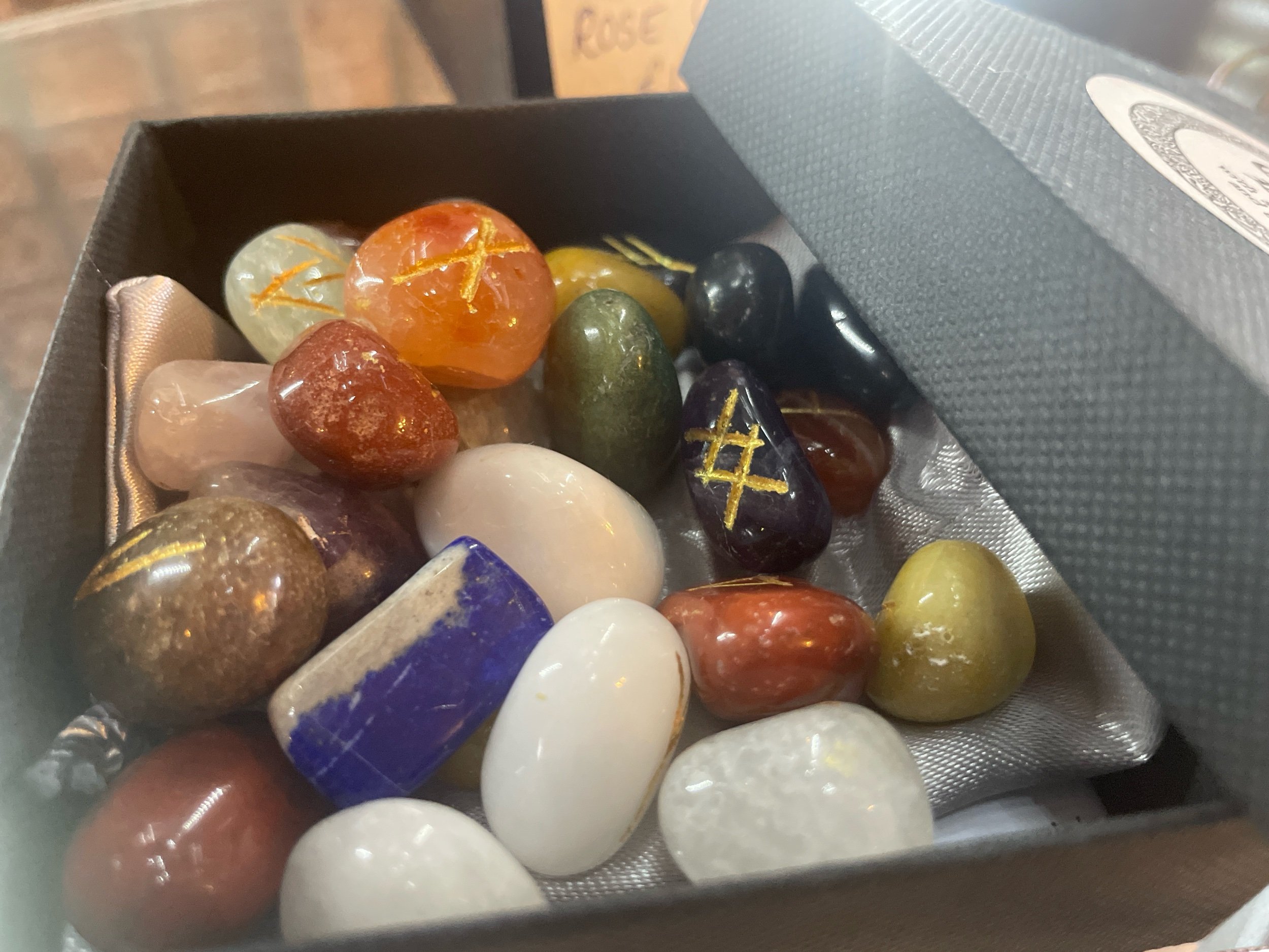 Shop › Gemstone Runes Gemstone Runes £22.00 Mixed stones with pouch, guide and gift box Mixed stones with pouch, guide and gift box Add To Cart Added!