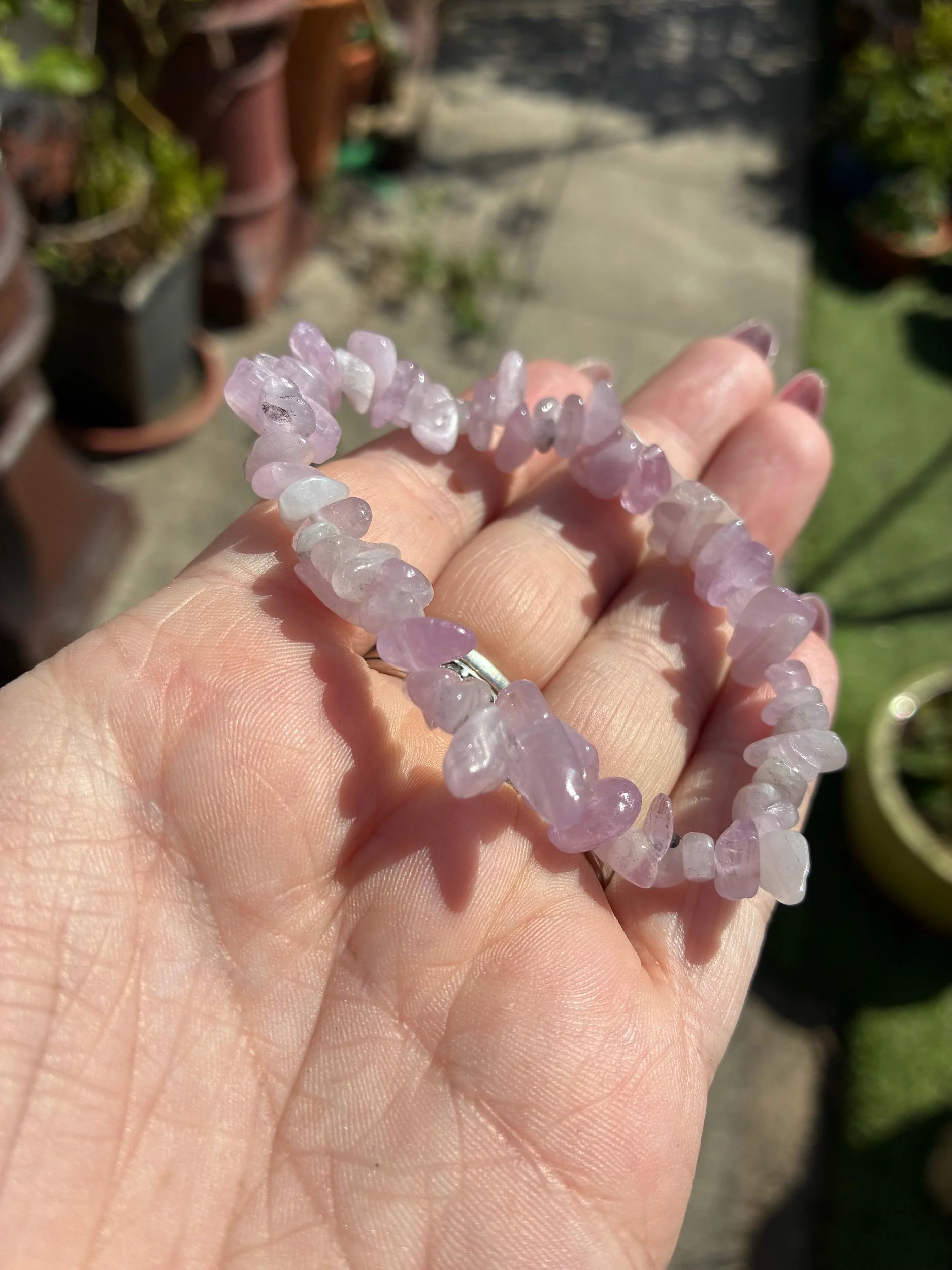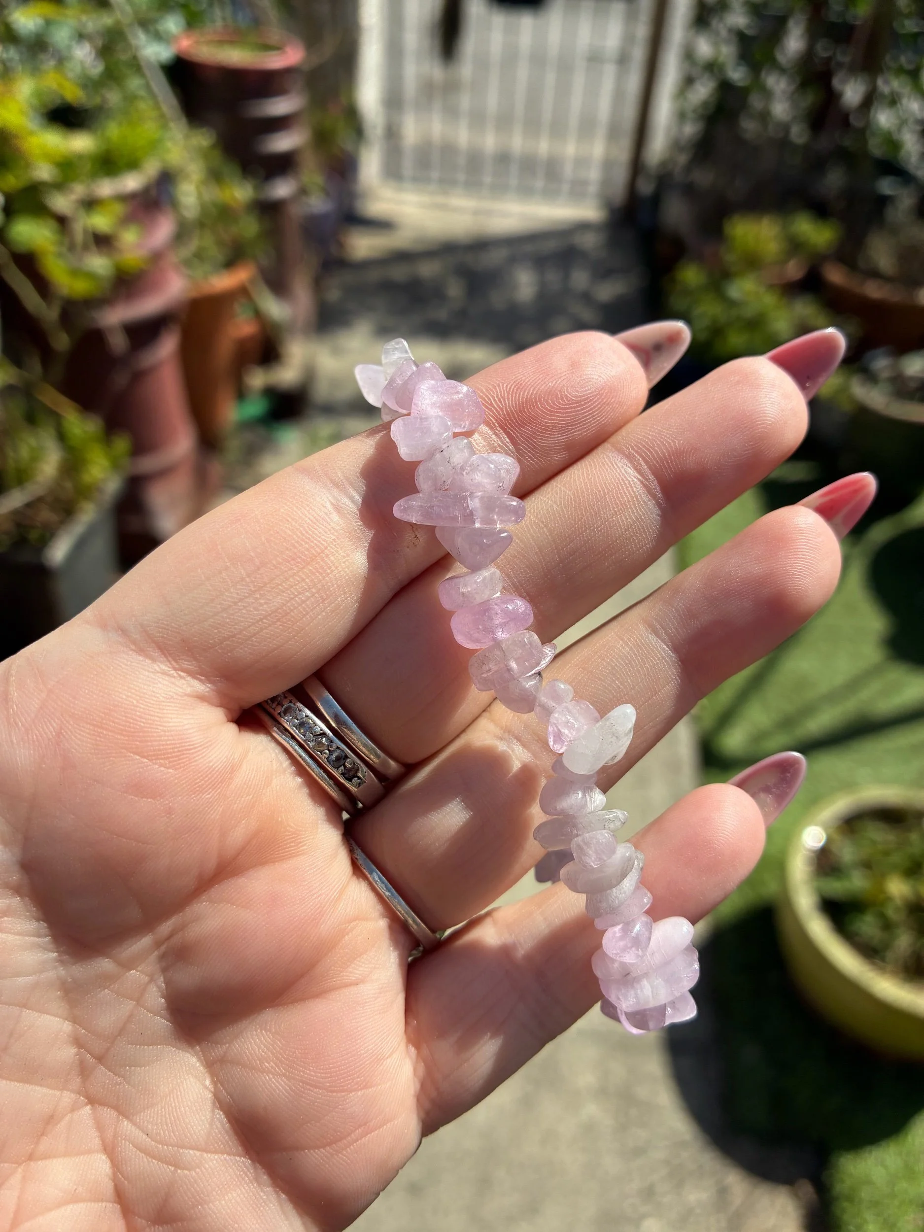 Kunzite is often associated with gentle, heart-centered energy, believed to promote unconditional love, emotional healing, and inner peace. Many consider it a calming stone that helps release stress, dissolve emotional blockages, and open the heart to compassion and deeper connection.
